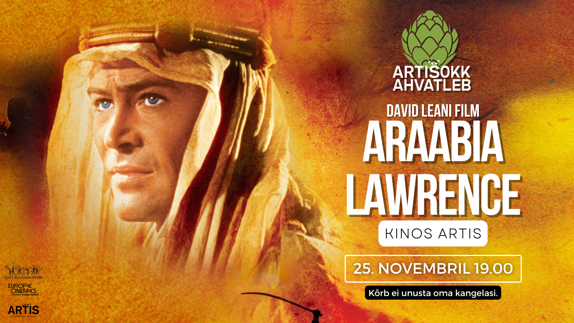 ARTIŠOKK AHVATLEB: David Leani "Araabia Lawrence" (Lawrence of Arabia, 1962) linastub teisipäeval, 25. novembril kell 19:00.