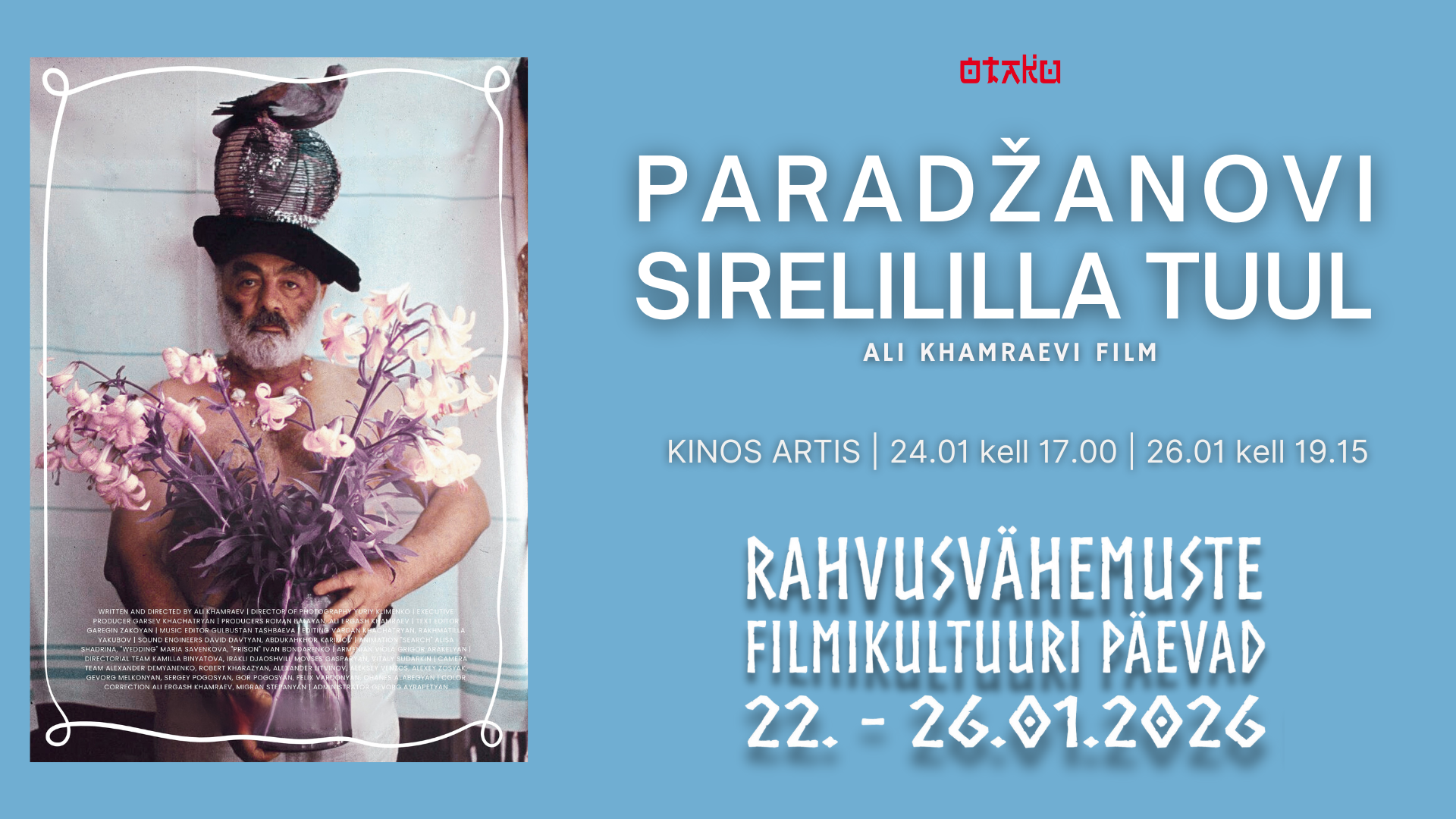 23.–27. jaanuaril jõuavad Kino Artisesse Rahvusvähemuste filmikultuuri päevad 2026 – viis päeva, mis avavad ukse Usbeki kino ajalukku ja tänasesse päeva. Seekordne erikülaline on režissöör Ali Khamraev, Usbeki kino legend, kes on tegutsenud nii režissööri, stsenaristi kui produtsendina ning kelle filmid kõnetavad julguse, poeetika ja ajastu pulsi kaudu.